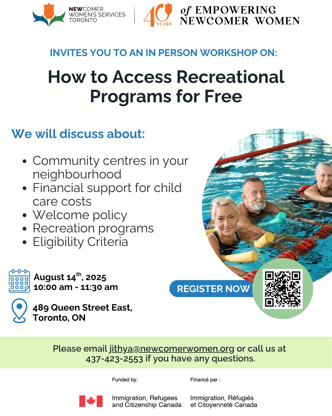 A free workshop to help you connect to your Community Center and attend recreational programs for free.