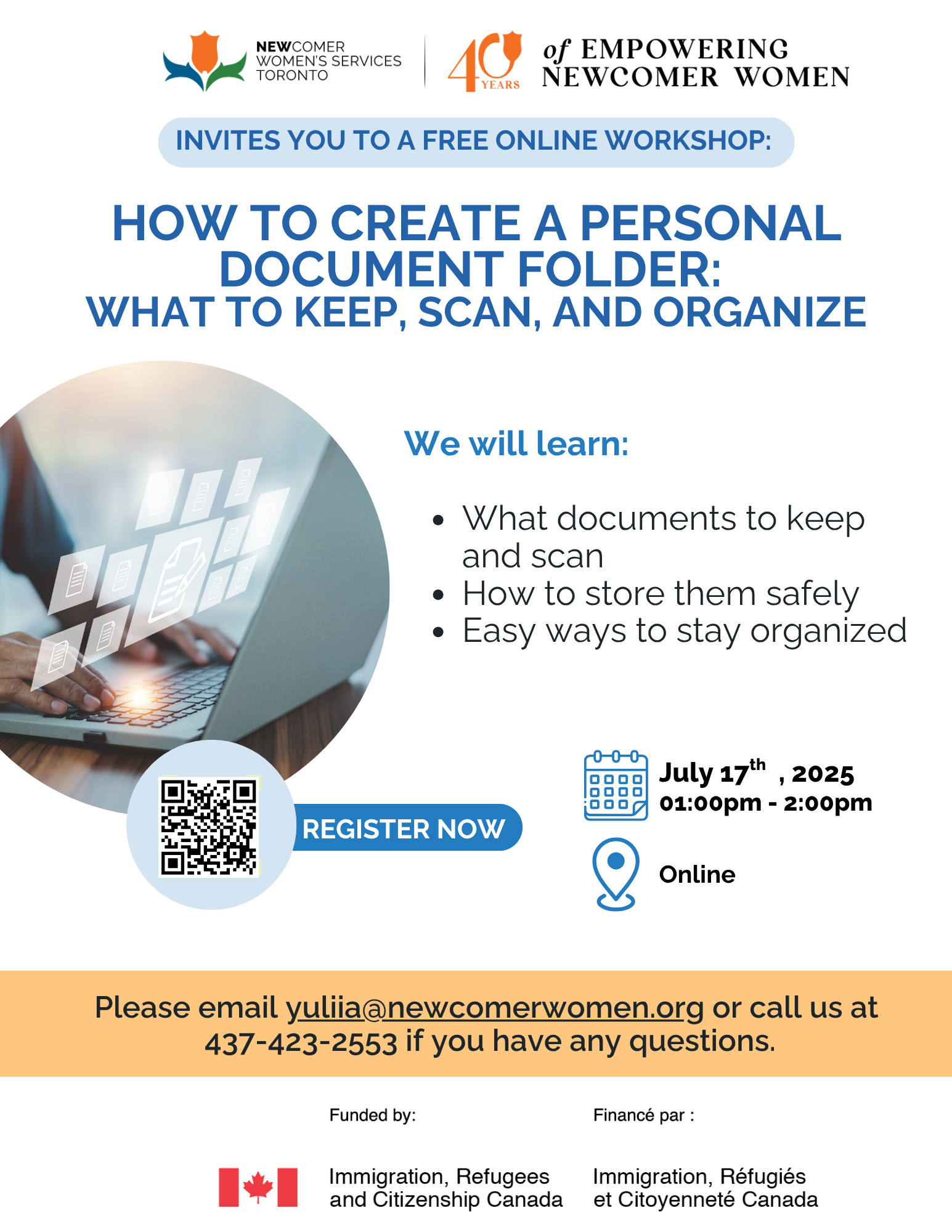 This is an online session to help you create a personal document folder by learning what important documents to keep, which ones to scan, and how to organize them for easy access and future use.